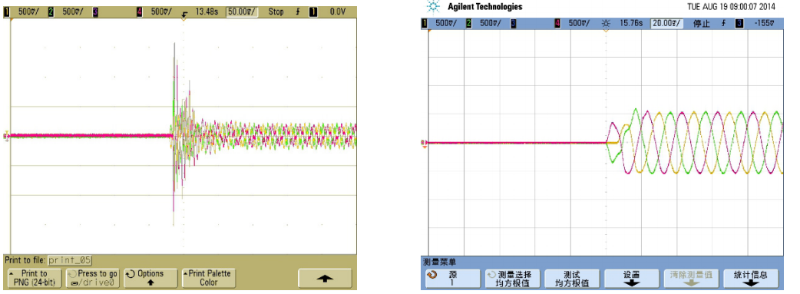 電容器組以常規(guī)方式投入系統(tǒng)時,會產(chǎn)生很大的暫態(tài)涌流沖擊,對電容器、投切開關(guān)和電力設備造成沖擊,導致電容器、投切開關(guān)壽命縮短,并在配電系統(tǒng)中產(chǎn)生強烈電磁擾動,干擾用電設備的正常運行。HTEQ采用零過度過程投切調(diào)諧電容器組技術(shù),可徹底消除電容器組投切時的暫態(tài)涌流和干擾,極大地提高補償設備的跟蹤速度,提高電容器與投切開關(guān)的可靠性和使用壽命。