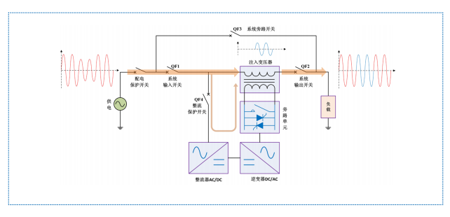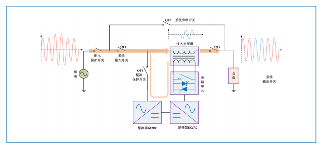 動(dòng)態(tài)電壓調(diào)節(jié)器 HTAVC 由四象限整流器、逆變器、旁路單元和串聯(lián)在電網(wǎng)輸入端和負(fù)載之間的注入式變壓器組成,裝置從電網(wǎng)中獲取原始能量,無(wú)儲(chǔ)能元件。它可快速在線調(diào)節(jié)電壓,是解決電壓暫降電壓暫升、電壓波動(dòng)、改進(jìn)電能質(zhì)量的高效可靠的裝置。